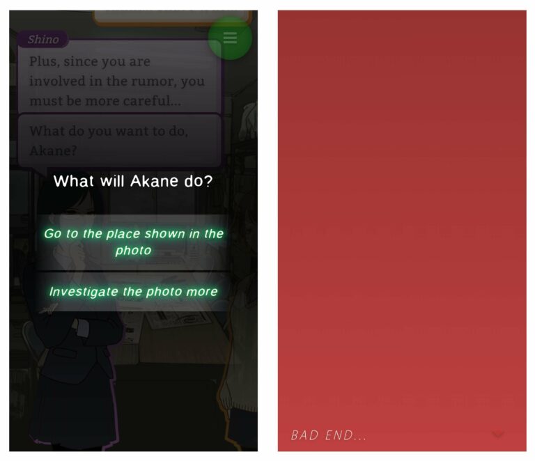 Mengapa Anda bisa langsung menuju ke Bad End? Karena dalan cerita ini, Anda diharuskan mencari kebenaran dari rumor-rumor misterius yang beredar di forum, dan tentu saja yang akan Anda hadapi adalah mahkluk-mahkluk gaib atau hantu. Bila Anda salah memilih pilihan yang tepat, Anda akan langsung dibunuh atau dikutuk oleh hantu yang diceritakan oleh forum tersebut.