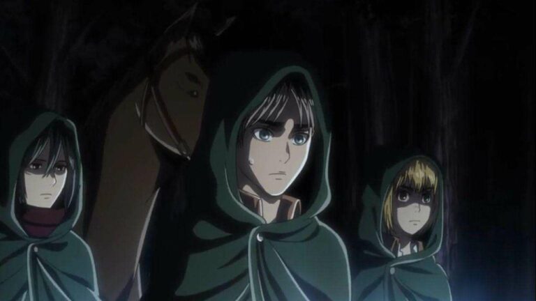 | Pengisi Suara | Marina Inoue sebagai Armin Arlelt Shiori Mikami sebagai Historia Reiss Yui Ishikawa sebagai Mikasa Ackerman Yuuki Kaji sebagai Eren Jaeger Daisuke Ono sebagai Erwin Smith Hideaki Tezuka sebagai Dhalis Zachary Hiro Shimono sebagai Conny Springer Hiroshi Kamiya sebagai Levi Kazuhiro Yamaji sebagai Kenny Ackerman Kishō Taniyama sebagai Jean Kirschtein Masahiko Tanaka sebagai Dot Pyxis Romi Park sebagai Hange Zoë Takehito Koyasu sebagai Titan Binatang Tomohisa Asou sebagai Pastor Nick Tomohisa Hashizume sebagai Bertholdt Hoover Yoshimasa Hosoya sebagai Reiner Braun Yu Kobayashi sebagai Sasha Blouse Yūsaku Yara sebagai Rod Reiss |