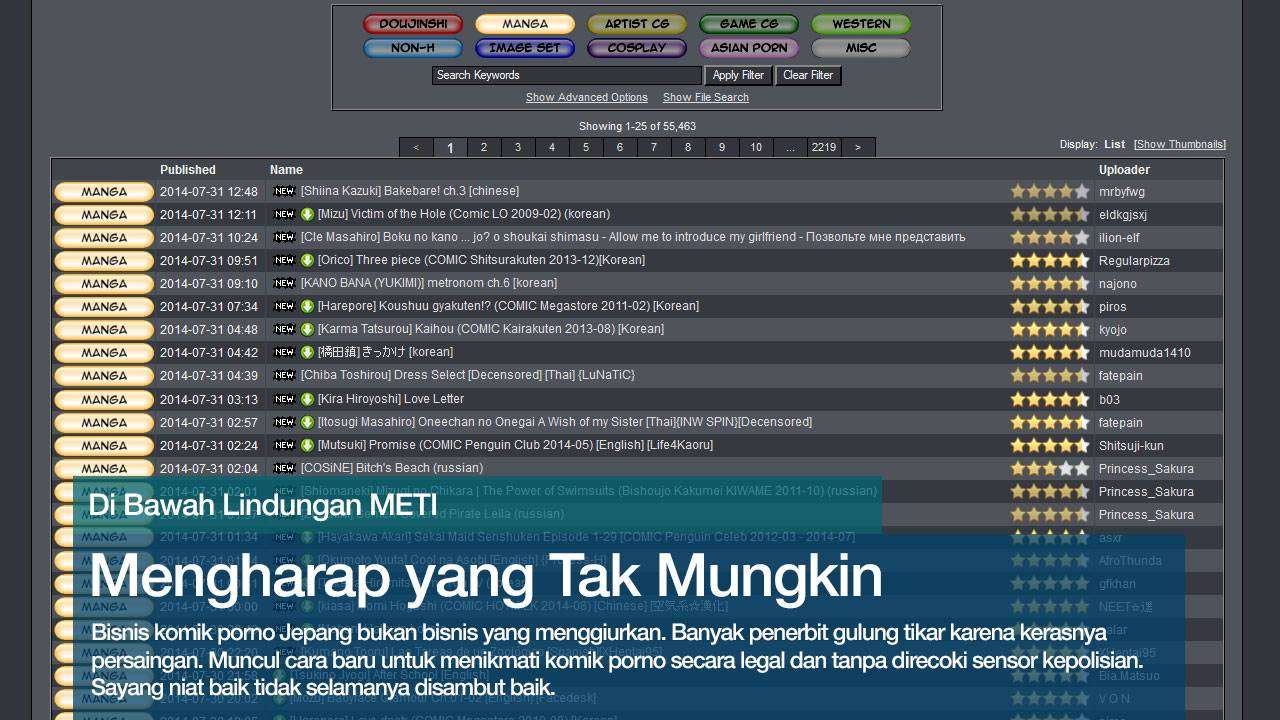 Beberapa pelanggan situs repositori komik porno kenamaan g.e-hentai.org mengeluh karena beberapa judul – terutama dari artis-artis di bawah bendera Wani Magazine – mendadak menghilang dari galeri situs tersebut.