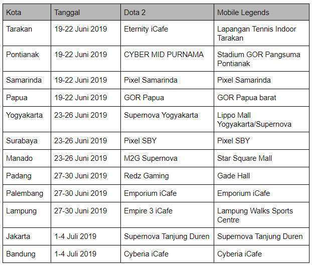 Kualifikasi daerah IENC akan dimulai pada tanggal 19 Juni 2019 hingga 4 Juli 2019. Adapun jadwal dan lokasi dari kualifikasi daerah bisa dilihat di bawah ini.