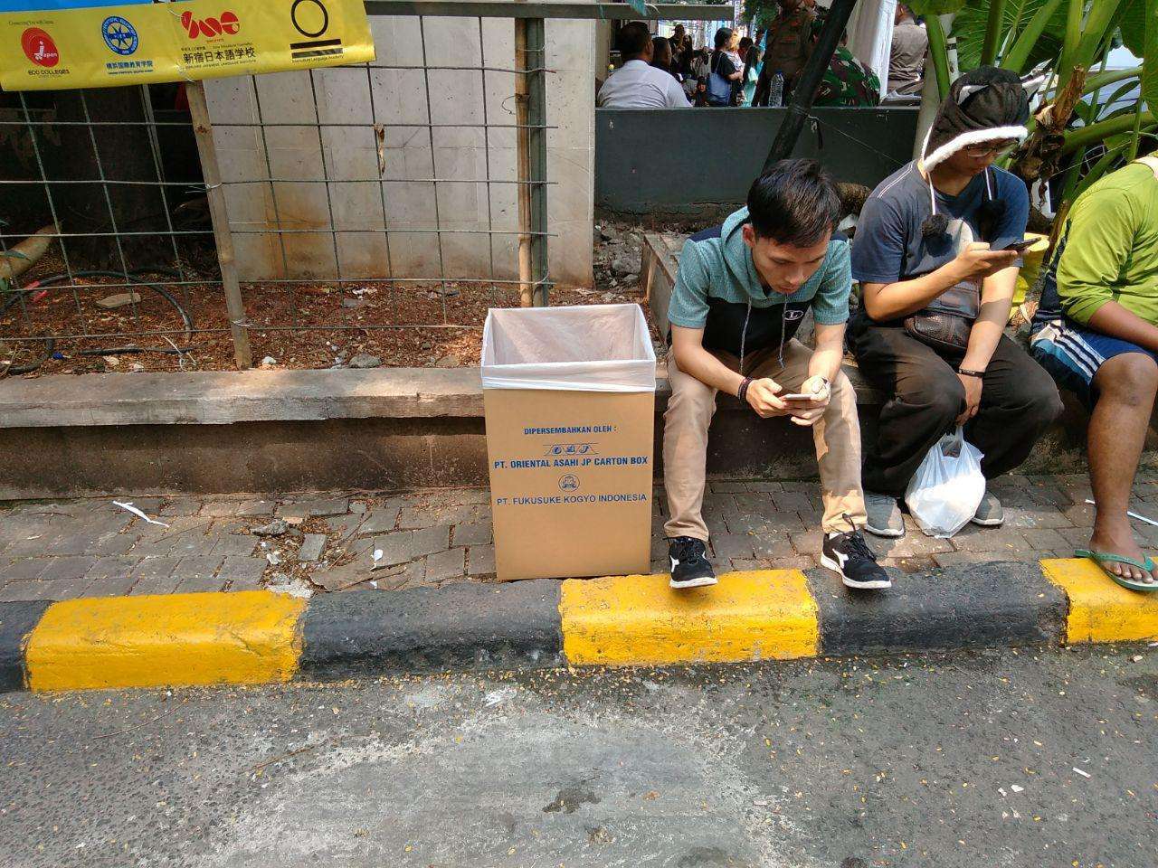 Tentu saja di tengah-tengah keramaian tersebut, kebersihan akan menjadi masalah tersendiri di Ennichisai 2019. Dan demi mengatasi masalah kebersihan, di samping tempat sampah permanen yang sudah ada, panitia turut menyiapkan sejumlah tempat sampah kardus yang disumbang oleh Oriental Asahi JP dan Fukusuke Kogyo Indonesia, sebagai tempat sampah tambahan untuk mengantisipasi membludaknya jumlah sampah yang ada. Tempat sampah-tempat sampah kardus ini disebar di sejumlah titik di Ennichisai.