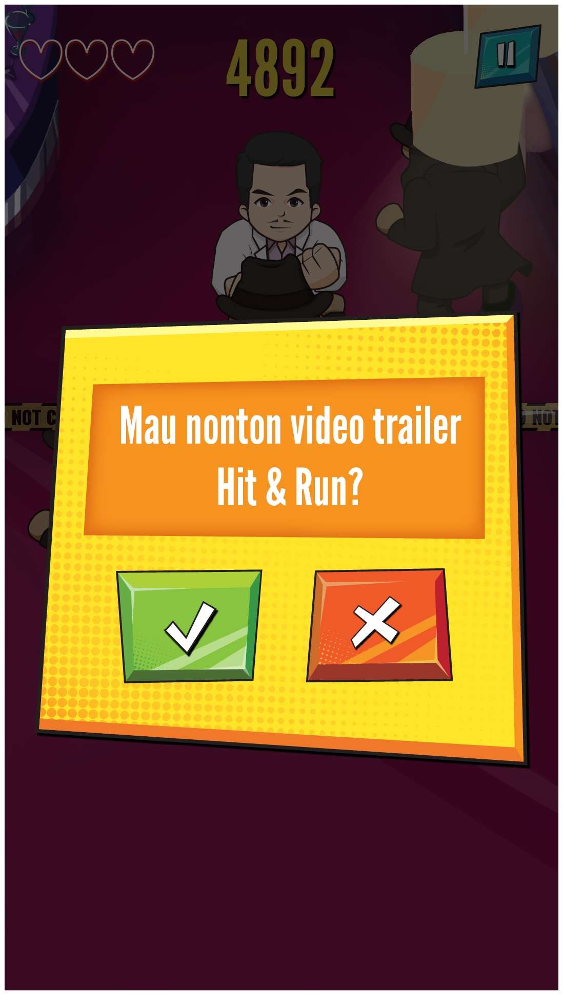 Di dalam game Hit & Run, para pemain dapat memilih 1 dari 4 karakter yang akan mereka mainkan. Karakter-karakter tersebut yakni Tegar yang diperankan oleh Joe Taslim, Lio yang diperankan oleh Chandra Liow, Meisa Sandriana yang diperankan oleh Tatjana Saphira, dan Jefri yang diperankan oleh Jefri Nichol. Setelah memilih karakter yang ingin dimainkan, para pemain akan diberikan tiga kesempatan untuk kalah melawan barel dan musuh.