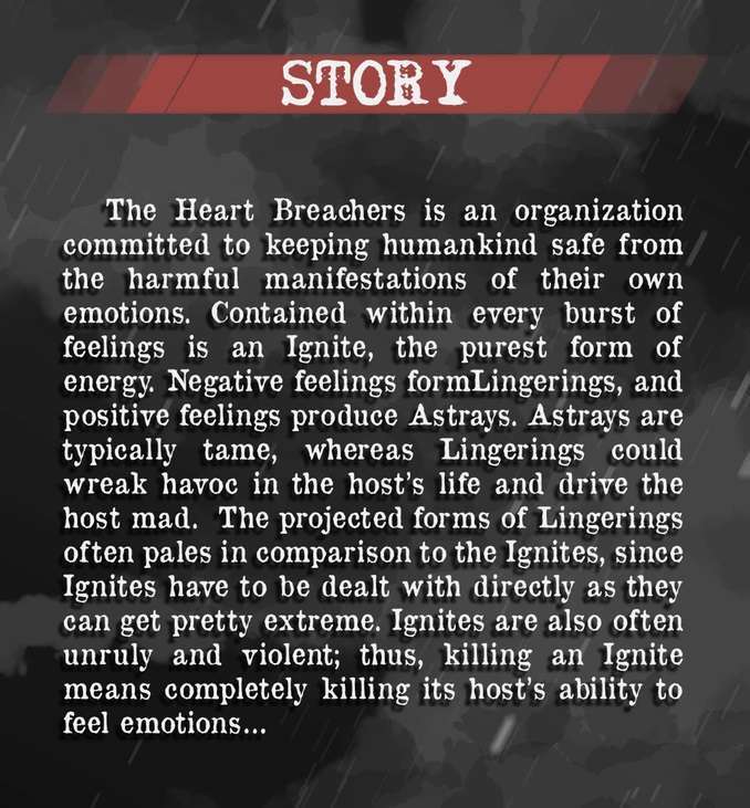 Dalam novel visual terbaru ini dikisahkanlah mengenai sebuah tim bernama Heart Breachers. Heart Breachers sendiri adalah sebuah satuan khusus yang bertugas untuk menghadapi sebuah makhluk misterius lagi berbahaya yang disebut sebagai Lingering, sesosok makhluk berbahaya yang merupakan manifestasi dari emosi manusia yang bergentayangan dan berbuat kerusakan di muka bumi, bahkan membunuh maupun merasuki manusia.