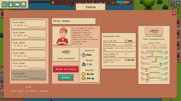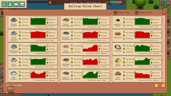 Untuk versi saat ini, terdapat dua pilihan yang dapat Player gunakan untuk mendapatkan uang, yaitu melalui pesanan pelanggan atau menjual hasil panen ke pasar. Pertama, Player dapat mengambil pesanan dari pelanggan kemudian membudidayakan ikan yang sesuai dengan pesanan. Kedua, Player dapat memeriksa jenis ikan apa yang memiliki harga paling mahal di pasaran. Kemudian Player hanya perlu membudiyakan ikan tersebut dan menjualnya ke pasar untuk mendapatkan uang.