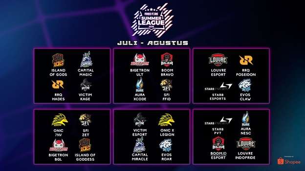 Tim yang tergabung di Summer League adalah ISLAND OF GODS, CAPITAL MAGIC, RRQ HADES, VICTIM REIN, BIGETRON ULT, BOOM BRAVO, AURA XCODE, SFI FFID, LOUVRE ESPORT, RRQ POSEIDON, STAR8 ESPORT, EVOS CLAW, ONIC 7NV, SFI ZET, BIGETRON BGL, ISLAND OF GODDESS, VICTIM ESPORT, ONIC X LEGION, CAPITAL MIRACLE, EVOS ROAR, STAR8 PVT, AURA NESC, BOOM ID ESPORT, dan LOUVRE INDOPRIDE.