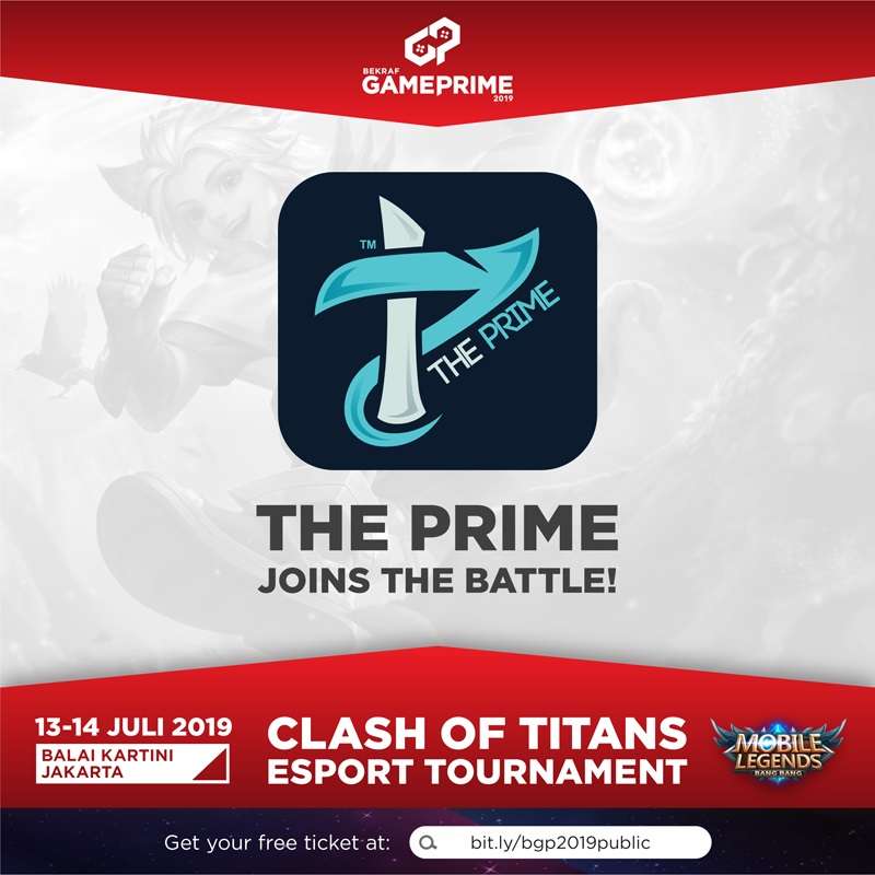 BEKRAF Game Prime 2019 akan diramaikan dengan turnamen esports bertajuk Clash of Titans. Akan ada delapan tim undangan yang bertanding untuk memperebutkan total hadiah 50 juta rupiah. Kedelapan tim yang akan bertanding adalah Team RRQ, GGWP.ID, Genflix Aerowolf, Louvre Esports, The Prime, Saints Indo, Bigetron Esports, dan Island of God.