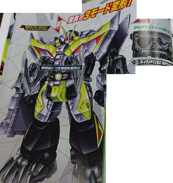 Telah beredar sebuah gambar scan majalah katalog mainan Kamen Rider Zero-One di internet pada hari ini (11/07). Dalam gambar scan majalah tersebut, terungkaplah wujud asli dari Kamen Rider Zero-One dan juga Kamen Rider lainnya disertai dengan alat berubahnya, senjata, dan kendaraannya.