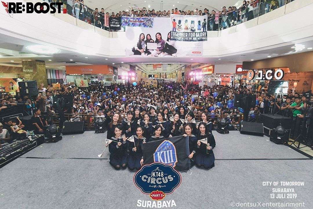 Pada hari Sabtu (13/7) JKT48 Team KIII berhasil mengguncang Surabaya dengan diadakannya acara JKT48 Circus Part 3. Acara ini diadakan di Mall City of Tomorrow Surabaya. Acara ini dihadiri oleh ratusan penggemar JKT48 khususnya Tim KIII dari berbagai daerah. Seperti apakah kemeriahan acara JKT48 Circus Surabaya? Mari kita simak artikel berikut.