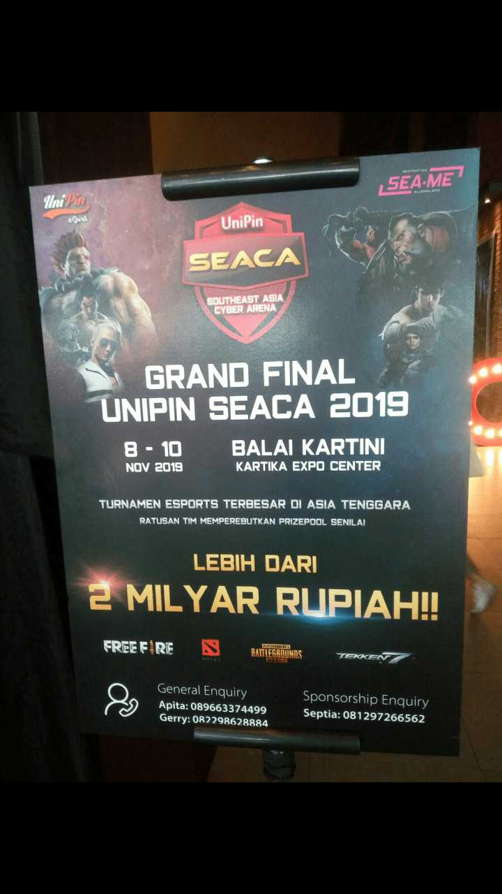 SEACA 2019 (SouthEast Asia Cyber Arena 2019) akan digelar di Kartika Expo – Balai Kartini, Jakarta pada tanggal 8-10 November 2019 bersama dengan SouthEast Asia Millenial Expo (SEA-ME).