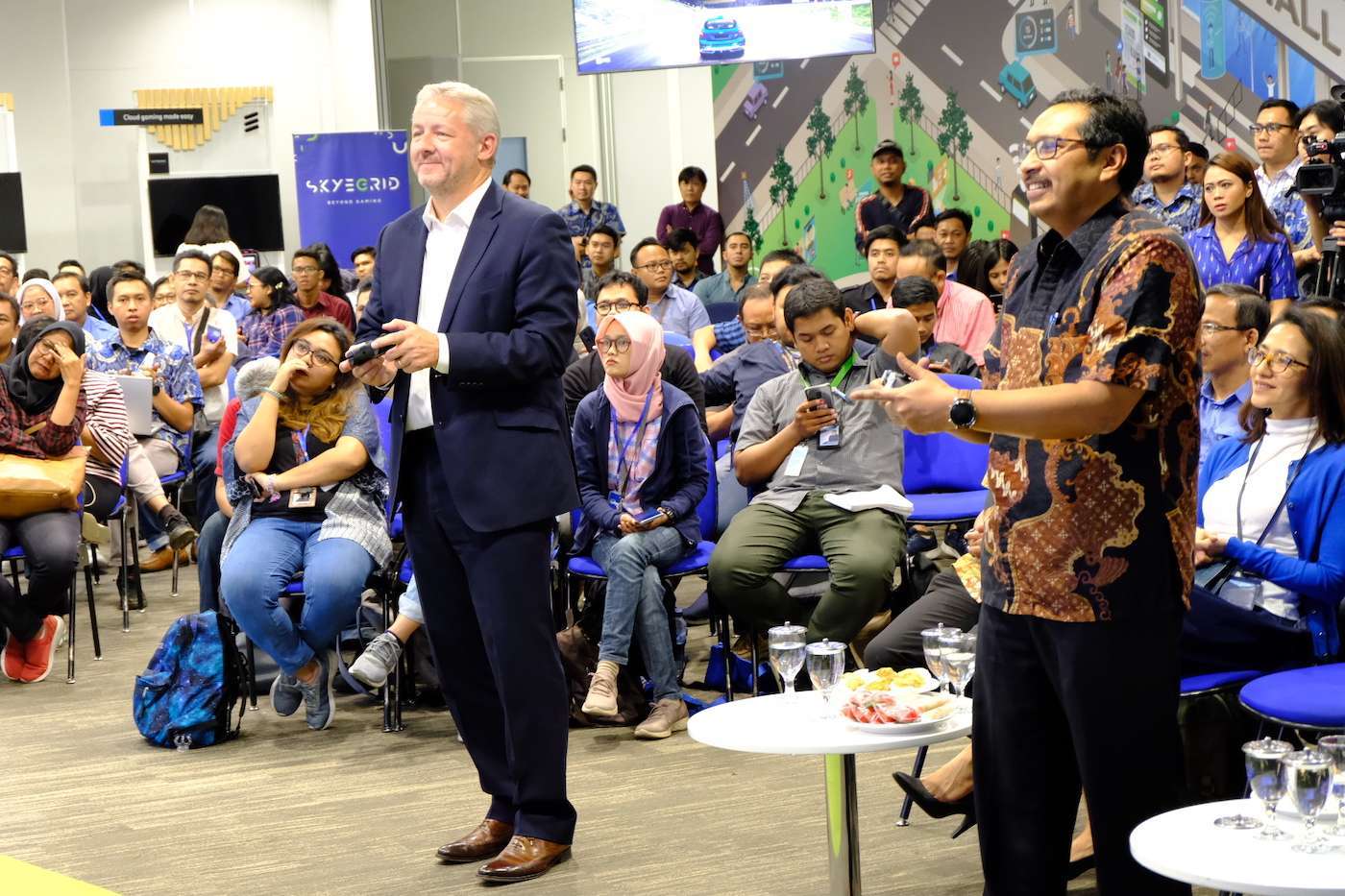 Kehadiran 5G membuka berbagai peluang baru di berbagai industri, salah satunya industri gaming. Dengan teknologi 5G, cloud gaming yang membutuhkan ruang penyimpanan minim pada perangkat dengan kecepatan internet tinggi dan latensi rendah menjadi sangat mungkin. Tampak pada foto President Ericsson Indonesia, Jerry Soper bersama Direktur Jenderal Sumber Daya dan Perangkat Pos dan Informatik (SDPPI), DR. IR. Ismail MT mencoba teknologi cloud gaming di acara uji coba 5G XL Axiata pada Rabu (21/8).