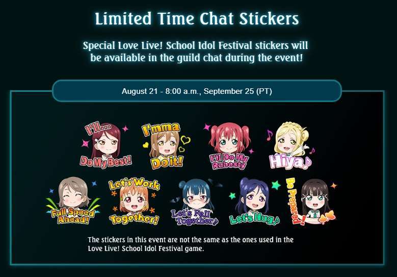Dan terakhir untuk meramaikan event yang berlangsung, pemain bisa menggunakan Stiker eksklusif dalam waktu terbatas ini di Guild masing-masing.