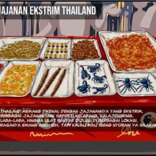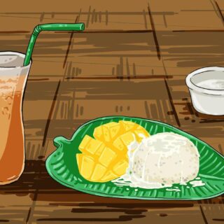 Thailand juga memiliki ragam kuliner khas yang sangat menarik bagi para wisatawan. Salah satu kuliner khas Thailand yang diangkat dalam pembuatan komik ini adalah Mango Rice dan Thai Tea, dua kuliner khas Thailand yang cukup naik daun di Indonesia. Makanan khas Thailand lainnya yang juga sangat menarik untuk dicoba adalah Roti Sai Mai khas Ayutthaya. Tidak hanya makanan yang menggugah selera, Thailand juga punya jajanan yang unik dan cukup “menantang” seperti serangga dan kalajengking goreng.