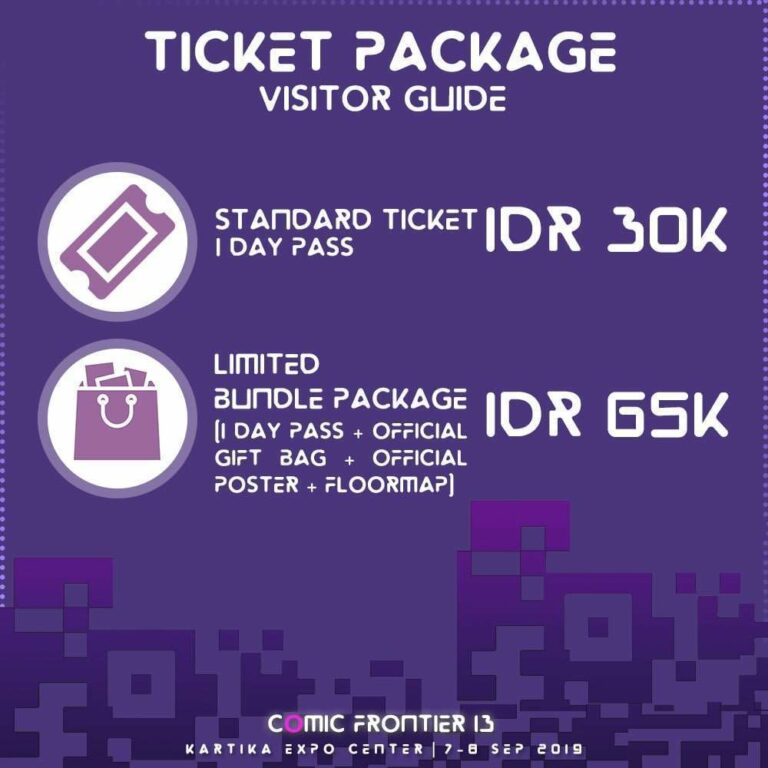 Perhelatan Comic Frontier 13 akan diselenggarakan pada 7 – 8 September mendatang di gedung Kartika Expo Center, Balai Kartini, Jakarta Selatan. Lokasi ini telah menjadi tempat penyelenggaraan Comic Frontier sejak 2017 hingga saat ini. Tiket masuk acara dijual dengan harga Rp 30.000 melalui loket tiket yang dibuka di lokasi acara dilaksanakan. Loket tiket mulai beroperasi sejak pagi hari untuk mengantisipasi antrian panjang dari para pengunjung yang sangat antusias menyambut ajang yang mempertemukan insan kreatif ini.