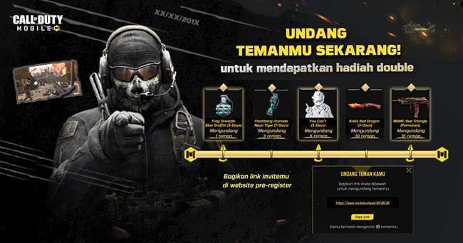Pra-registrasi game Call of Duty® Mobile – Garena menarik perhatian gamer yang sangat besar di seluruh negara, dengan jumlah fans yang sudah mendaftar sebesar 820K di Indonesia! Saat pra-registrasi mencapai 1 juta, semua pemain yang sudah register akan mendapatkan M16 with Neon Tiger Camo (7 hari). Selanjutnya, pemain yang berhasil mengundang 15 teman untuk pra-registrasi akan mendapatkan senjata “MSMC – Red Triangle” permanen dan berkesempatan mendapatkan “HS0405 – Red Triangle” dan “MSMC – Yellow Triangle” permanen juga! Untuk saat ini, fans dapat mengakses informasi terbaru melalui halaman resmi dan Google Play. Bersiap untuk menikmati pengalaman bermain game terbaru di HPmu!