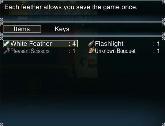 Selain kedua hal tersebut, pemain juga dapat masuk ke mode New Game+ di mana pemain akan bermain Feather of Praying dari permulaan lagi. Malas? Tenang saja, save-an lama kalian bisa digunakan untuk New Game+ sehingga tidak perlu lagi mengulang semuanya dari awal. Harap diingat bahwa 3 dari ending gim ini hanya bisa didapat di New Game+