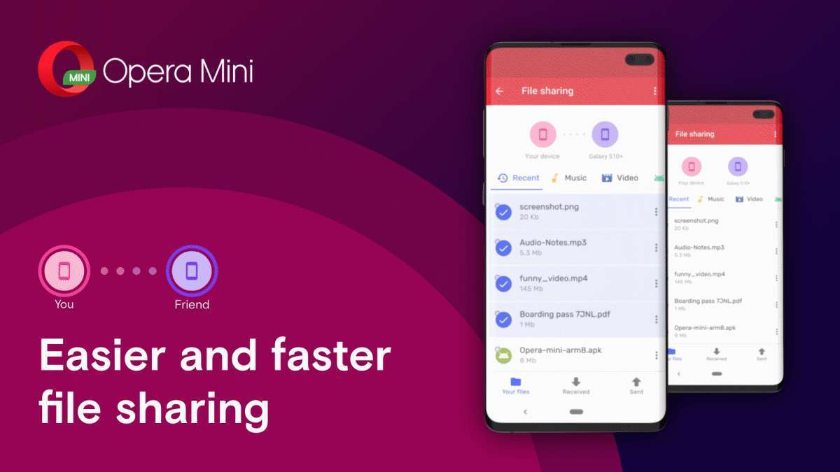 Melalui koneksi Wi-Fi langsung, yang dibangun secara mulus oleh Opera Mini dengan perangkat berdekatan, pengguna kini dapat berbagi file secara lebih cepat tanpa harus terhubung ke Internet. Dengan kata lain, Opera menyediakan jaringan tertutup guna mendukung aktivitas berbagi file cepat dan aman antar perangkat.