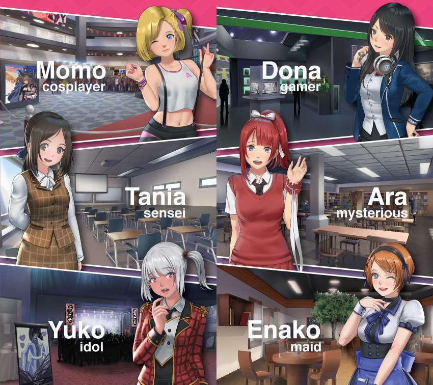 Cewek-cewek yang dapat ditemui di game ini antara lain Momo sang cosplayer, Dona si cewek penyuka game, Yuko sang artis ternama, guru sekaligus komikus bernama Tania, dan Enako sang maid. Kalau diperhatikan, masing-masing cewek bakal mewakili satu sub budaya dari budaya populer Jepang. Game yang sudah bisa diunduh di Google Playstore ini memiliki cerita yang dalam mengenai permasalahan-permasalahan yang terjadi seputar dunia budaya popular Jepang di Indonesia.