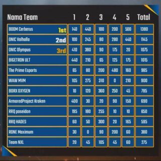 Dengan gelar juara tersebut, BOOM Cerberus berhak membawa pulang hadiah utama sebesar Rp30 juta, ONIC Valhalla berhak membawa Rp15 juta, sedangkan ONIC Olympus Rp5 juta.