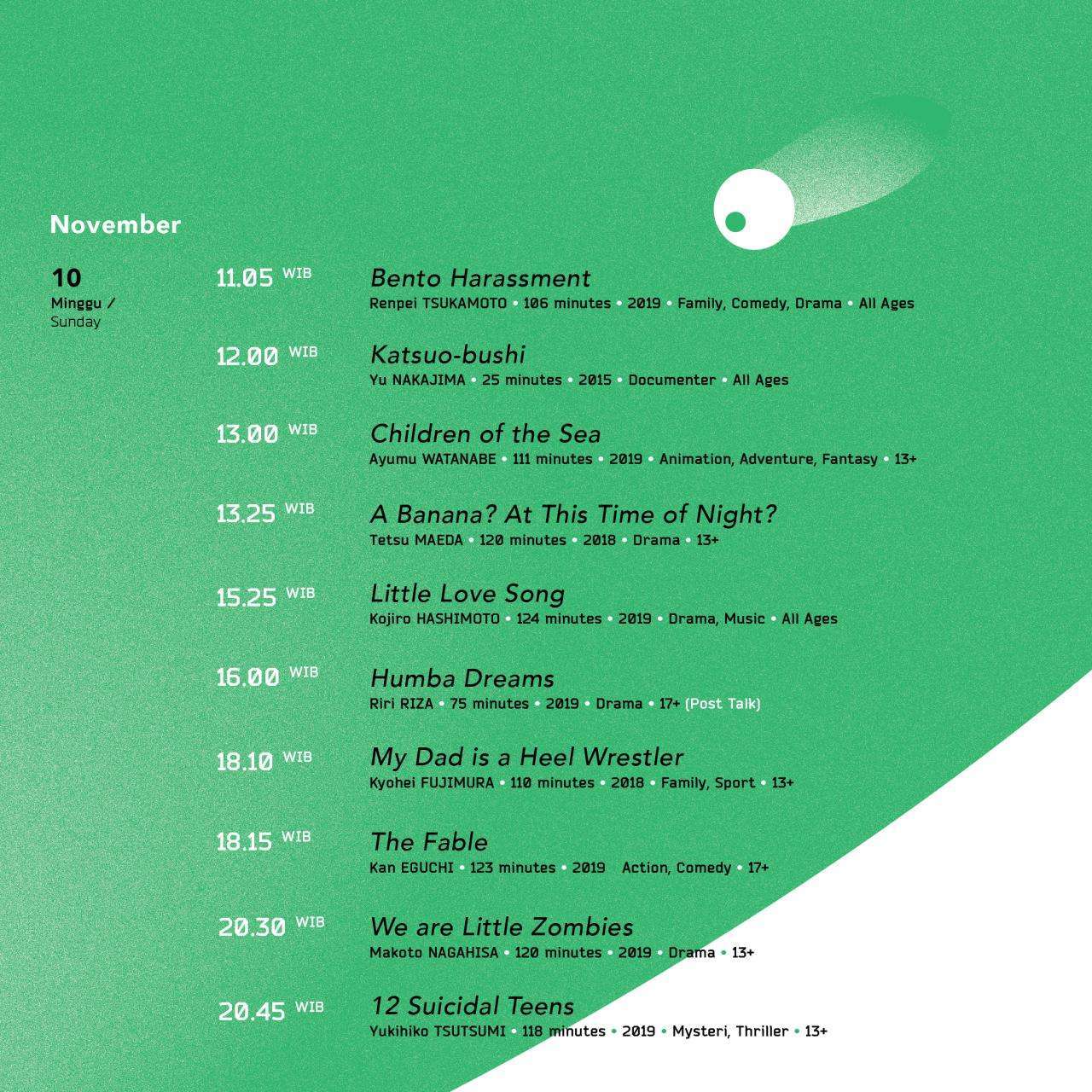 Berikut adalah film-film yang akan diputar, berikut jadwalnya: