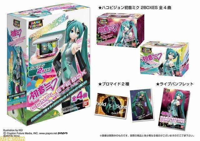 Box ini dapat anda miliki mulai 19 September mendatang. Setiap box akan menyediakan satu dari empat lagu berbeda yang disediakan untuk versi Hatsune Miku kali ini. Untuk satu box ini pembeli juga akan mendapat bonus kartu dan pamflet. Sebelumnya, perangkat box ini bekerja sama dengan franchise seri Gundam.