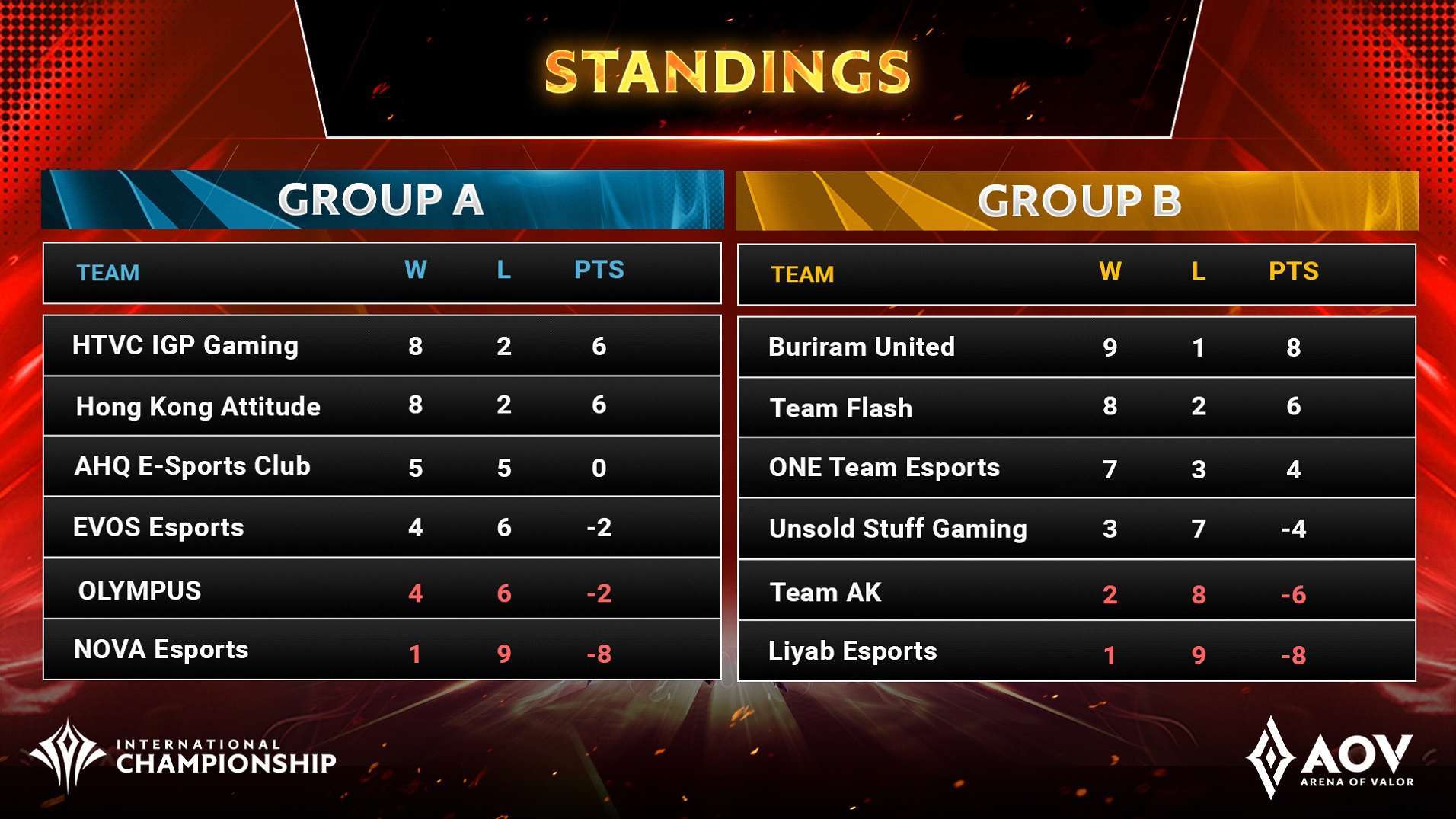 Dari Grup A, 4 tim yang berhasil lolos adalah Hong Kong Attitude (Chinese Taipei), HTVC IGP Gaming (Vietnam), ahq e-Sports Club (Thailand), dan EVOS Esports (Indonesia). Sedangkan dari Grup B adalah Buriram United (Thailand), Team Flash (Vietnam), One Team Esports (Chinese Taipei), dan Unsold Stuff Gaming (Jepang).