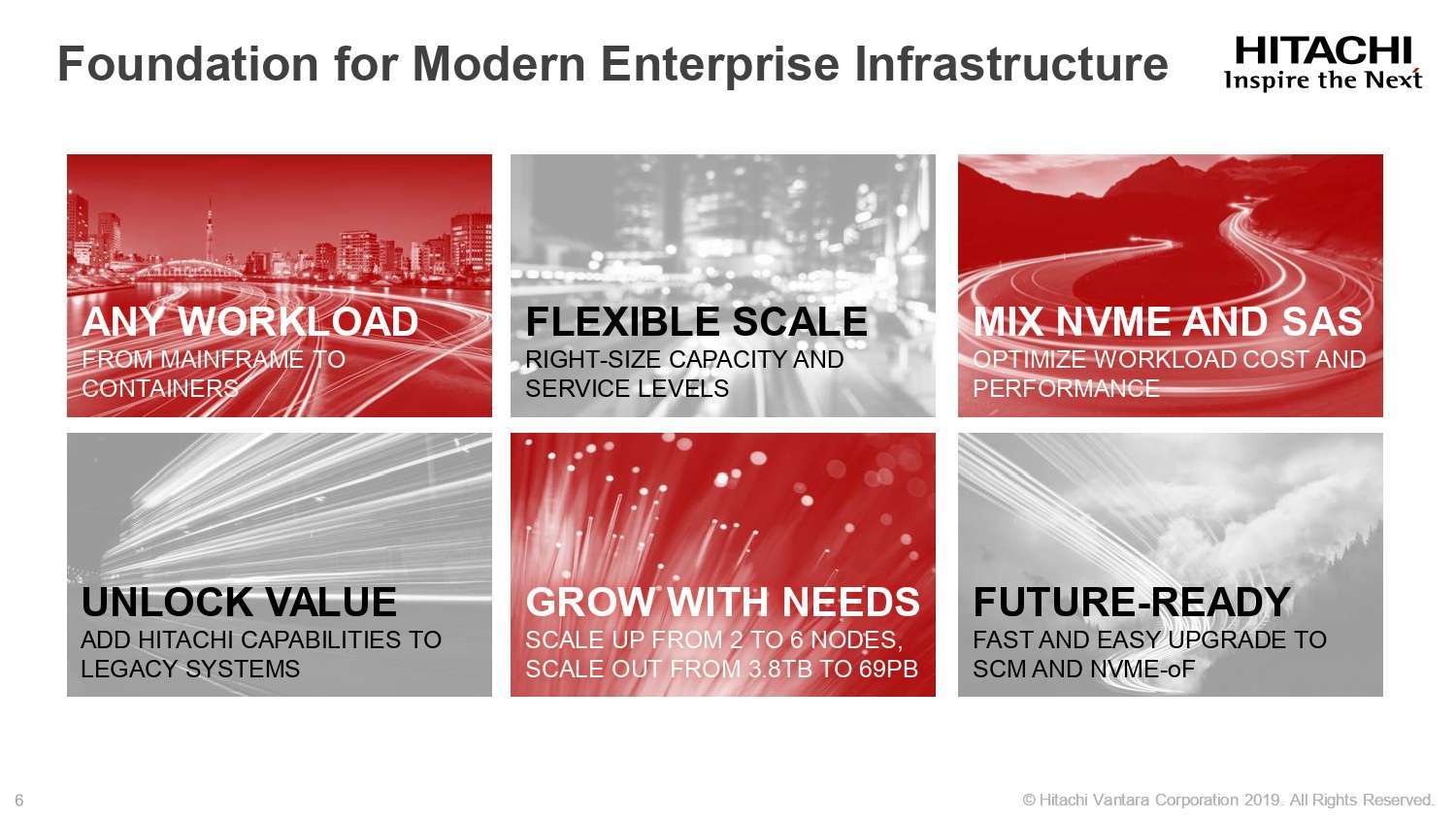 Melalui ajang NEXT 2019, Hitachi Vantara, anak perusahaan yang sepenuhnya dimiliki oleh Hitachi, Ltd. (TSE: 6501), mengumumkan kehadiran solusi storage dan fondasi infrastruktur generasi baru dengan arsitektur scale-out, scale-up terbaru untuk beban kerja dalam berbagai skala. Solusi ini terdiri dari Hitachi Virtual Storage Platform (VSP) 5000 series, storage array kelas enterprise terbaru dan tercepat di dunia1, software manajemen Hitachi Ops Center, dan Hitachi Storage Virtualization Operating System yang telah diperbarui. Ketiga teknologi ini secara bersama-sama mengakselerasi beban kerja di data center dan menghadirkan IT berwawasan masa depan dengan arsitektur baru dan inovatif yang merupakan fondasi ideal untuk melakukan modernisasi terhadap environment data center, cloud, dan DataOps.