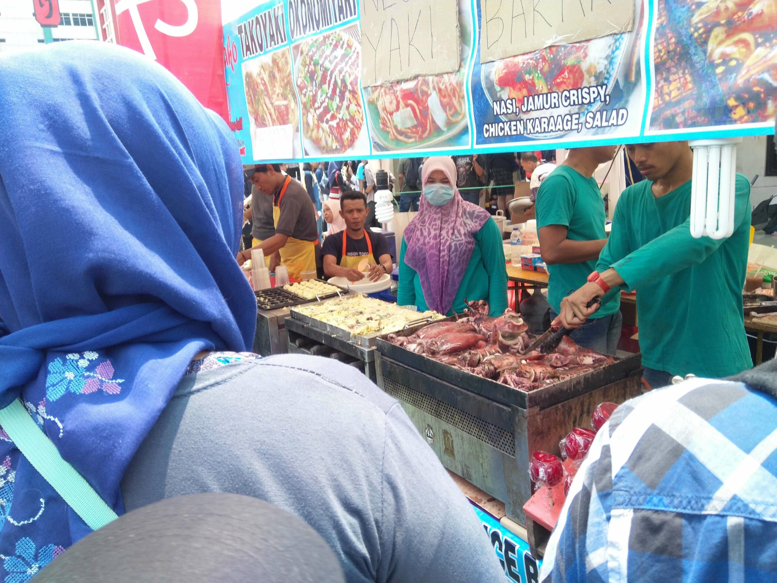 Sambil menangisi kekalahan telak di turnamen tersebut, saya pun melanjuti untuk menjelajahi event ini lebih dalam, sampai saya berhenti di area venue makanan, tampaknya Jsaya perlu mengucapkan ini; “bukan Jiyuu Matsuri jika tidak ada makanan ala Jepang yang bisa disantap.” Yap, ketika saya melihat gurita atau cumi saya tidak tahu jenis hewan tentakel yang dibakar itu, tetapi saya yakin itu adalah cumi raksasa yang lezat jika saya membelinya. Tidak berlama-lama, saya langsung memesan 1 porsi untuk saya sendiri. Hanya dengan merogoh kocek Rp. 35.000, saya bisa mendapatkan 1 kesempatan untuk mencoba cumi bakar itu.