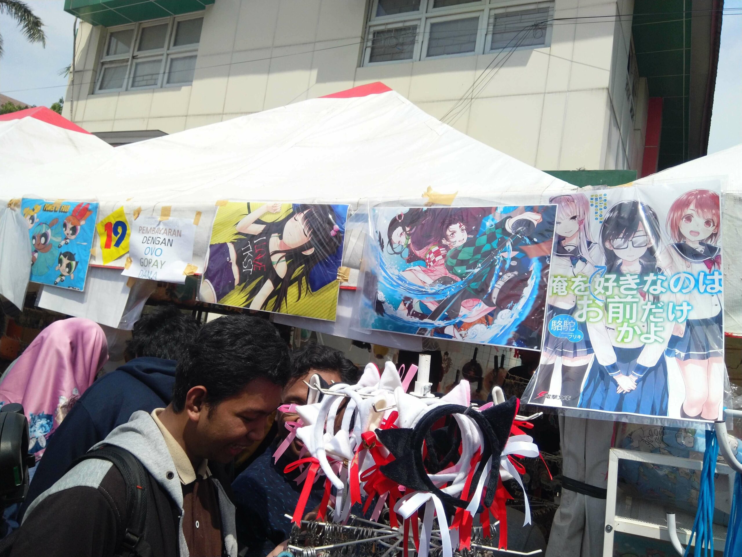 Setelah membahas tiket masuk, akhirnya kita masuk ke dalam venue event yang disampingnya itu penuh dengan toko-toko merchandise yang berbau anime, dan juga ada beberapa booth yang menjual hasil karya tangannya sendiri. Oh iya, di sana juga kita bisa mencoba beberapa permainan tradisional, seperti salah satunya menangkap ikan layaknya matsuri-matsuri di Jepang.