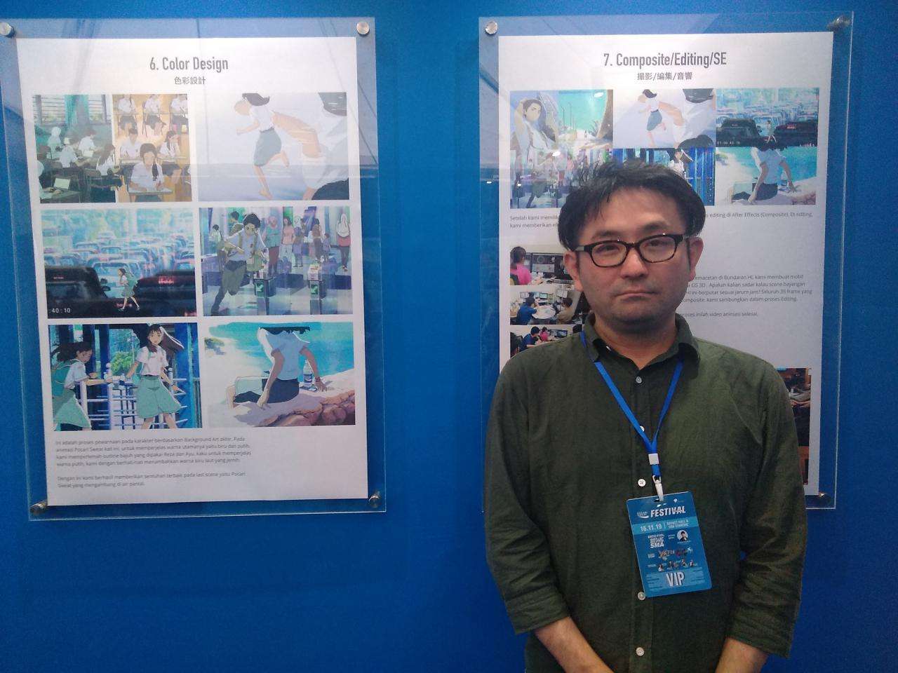 Bukan hanya atraksi-atraksi di atas. Di Pocari Festival para pengunjung juga bisa melihat proses di balik layar dari pembuatan video iklan TVC POCARI SWEAT – Bintang SMA yang viral itu, serta berkesempatan untuk bertemu langsung dengan sutradara dari video iklan tersebut, yang tak lain dan tak bukan adalah Yoshitoshi Shinomiya. Yoshitoshi Shinomiya sendiri adalah seorang artis asal Jepang yang cukup banyak terlibat dalam sejumlah produksi anime, terutama dalam hal desain ilustrasi maupun background. Sejumlah anime yang pernah ia tangani di antaranya beberapa anime karya sutradara kenamaan Makoto Shinkai seperti Children Who Chase Lost Voices, The Garden of Words, hingga your name. Ia juga membuat sejumlah iklan bergaya anime sebagaimana iklan Pocari Sweat – Bintang SMA yang sempat viral itu, termasuk juga menggambar visual dari film layar lebar Pokemon. Beberapa anime yang juga turut ia kerjakan di antaranya adalah In This Corner of the World, Shoujo Shuumatsu Ryokou, Napping Princess, dan sejumlah judul lainnya.