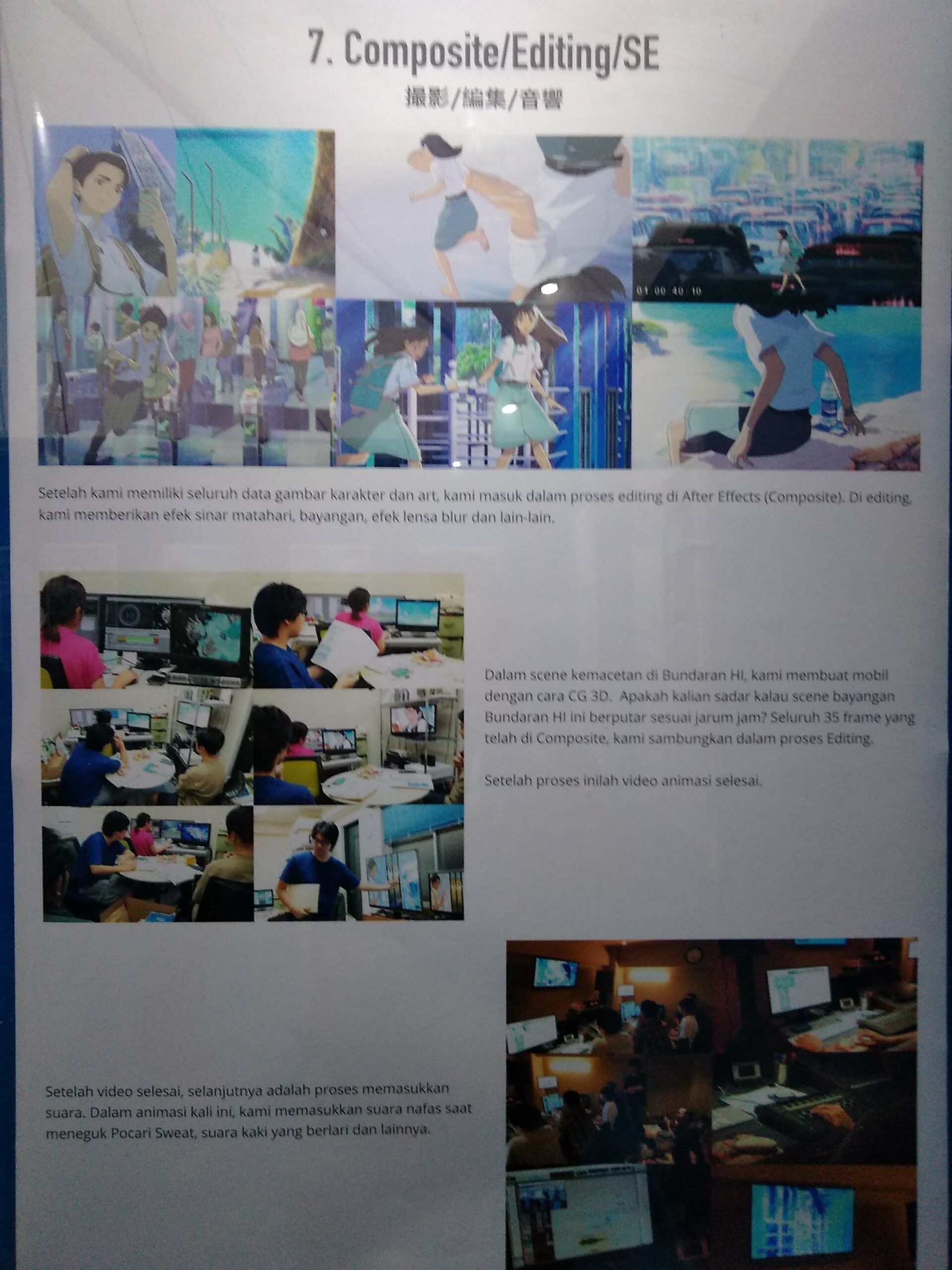Referensi saya adalah hasil pengamatan saya sendiri seperti mengamati rambut siswa, sampai saya membeli sendiri seragam sekolah yg dipakai oleh siswa – siswa tersebut. Lalu skin color dan gaya rambut saya langsung komunikasikan dengan pihak Pocari Sweat berkali-kali hingga dapat sense sesuai selera Indonesia.