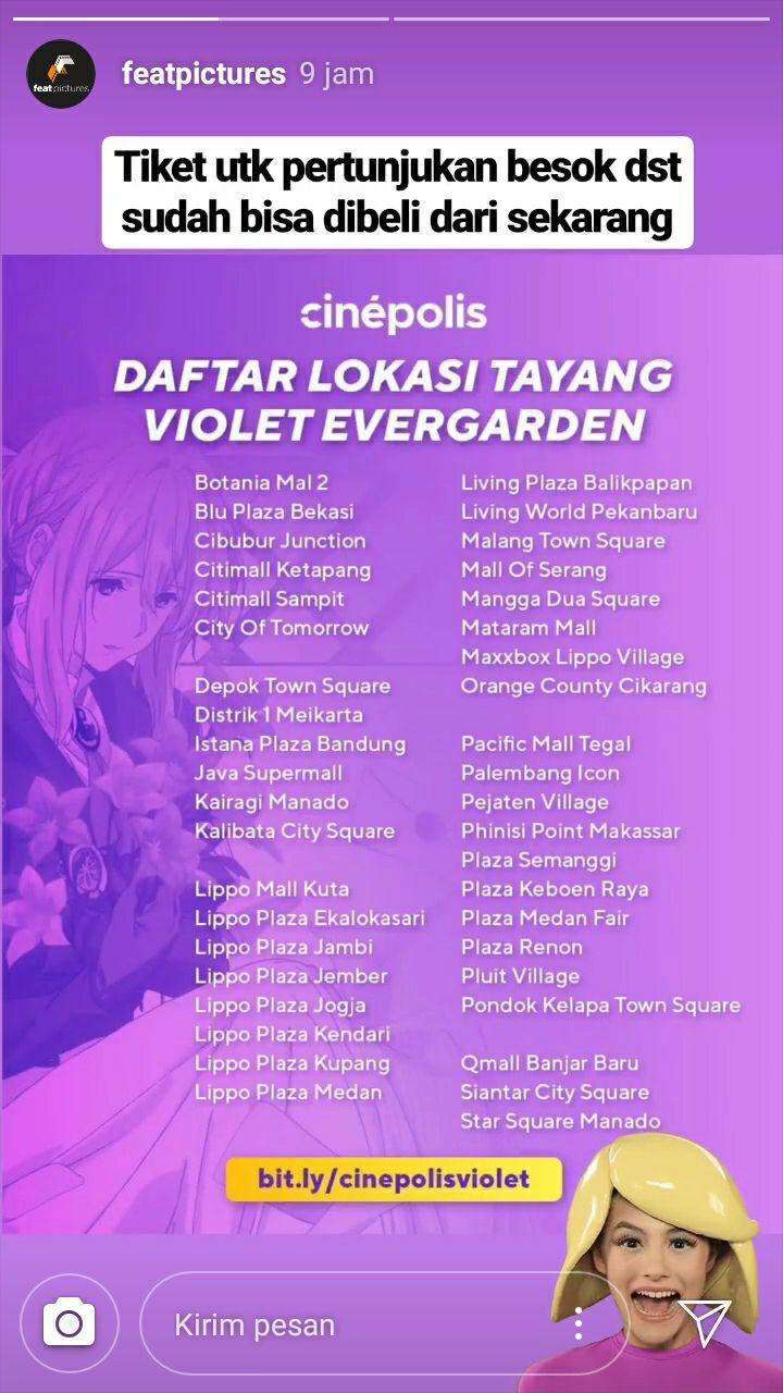 VIOLET EVERGARDEN: ETERNITY & THE AUTO MEMORY DOLL tayang mulai hari ini di @cinepolisID @CGV_ID @FLIXCinema_ID @CinemaLotte @Platinumcineplx pic.twitter.com/TlH9TlAgJu