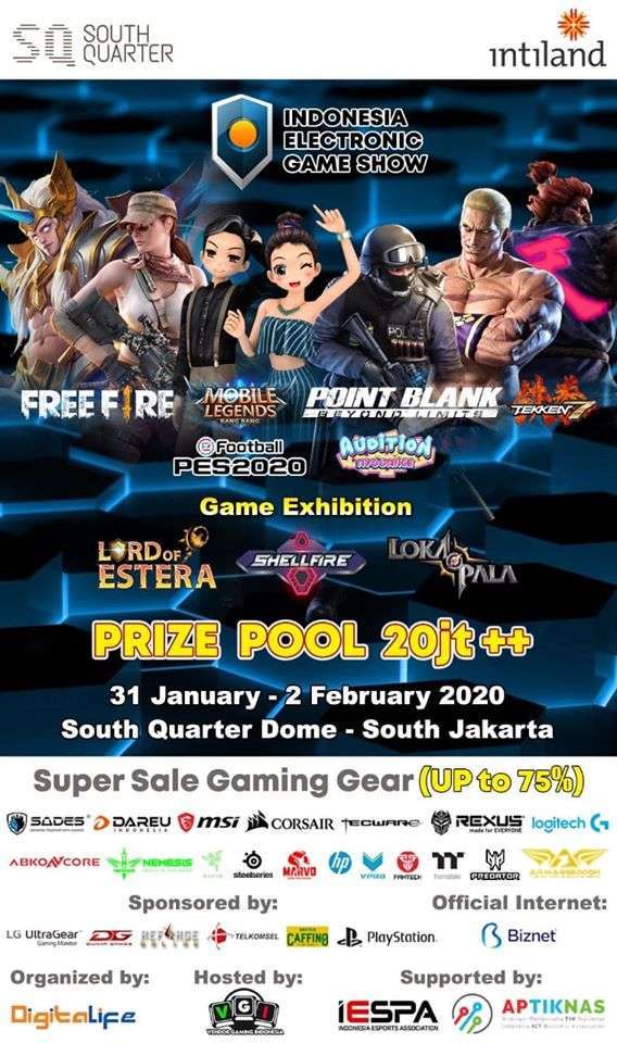 - Sale hardware merek ternama dari Vendor Gaming Indonesia, hingga 75% yang berlangsung selama acara, 31 Januari s.d. 2 Februari 2020.
