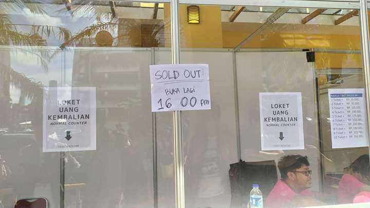 Antrian pengunjung pun bahkan masih terlihat hingga pukul 14.00 WIB, di mana para staf akhirnya ikut turun tangan dengan menjual tiket acaranya langsung ke pengunjung yang mengantri untuk mengurai antrian agar tidak menumpuk. Menjelang sore, tiket pengunjung akhirnya sempat habis terjual yang membuat loket penjualan ditutup sementara hingga pukul 16:00. Walau begitu, ternyata masih banyak pengunjung yang masih mengantri ke acara ini hingga loket penjualan dibuka lagi.