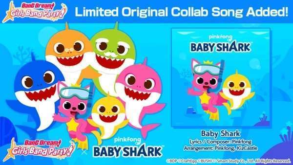 BanG Dream!, proyek media mix mengenai grup band anak perempuan ternama ini sebagaimana telah diberitakan sebelumnya, akan menjalin kolaborasi dengan Pinkfong Baby Shark. Kolaborasi ini berupa lagu Baby Shark yang akan dimuncukan di gim ponsel rhythm BanG Dream! selama tanggal 27 Maret hingga 17 April 2020. Kini menginjak tanggal 27 Maret 2020, lagu Baby Shark akhirnya telah bisa dimainkan. Mari intip seperti apa performa lagu ini di gim BanG Dream!, baik dalam tingkat kesulitan Easy, Normal, Hard, maupun Expert: