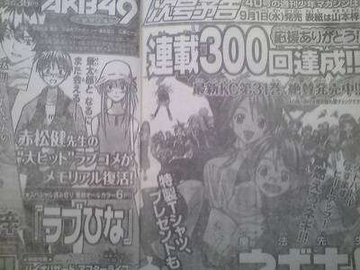 Pada edisi ke 39 dari Majalah Weekly Shonen milik penerbit Kodansha telah diumumkan bahwa Komik Love Hina karya mangaka Ken Amakatsu, mangaka yang juga menulis Komik Megister Negi Magi (Mahou Sensei Negima)akan kembali menyapa penggemarnya dalam sebuah cerita pendek pada tanggal 1 September nanti. Karya yang bakal membangkitkan kenangan para penggemarnya ini akan hadir dalam 6 halaman berwarna, dan menampilkan tokoh utama cerita tersebut, Narusegawa Naru dan Urashima Keitaro. Pada edisi majalah yang sama, akan hadir pula komik edisi ke 300 dari Megister Negi Magi beserta sebuah kaos edisi khusus.