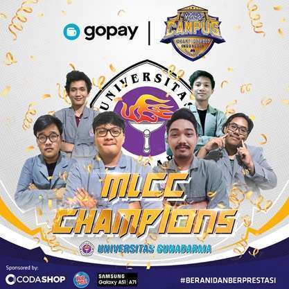 Universitas Gunadarma dari kota Depok berhasil keluar sebagai Juara Turnamen GoPay MLBB Campus Championship 2020 (GoPay MLCC 2020) setelah berhasil mengalahkan Universitas Sriwijaya Palembang di babak Grand Final pada 5 April 2020. Tidak hanya gelar juara dan membawa pulang piala GoPay MLCC 2020, Gunadarma juga berhasil membawa pulang penghargaan sebagai Tim dengan Kill, Death, dan Assist terbanyak serta uang tunai sejumlah Rp111juta dari total hadiah Rp396juta
