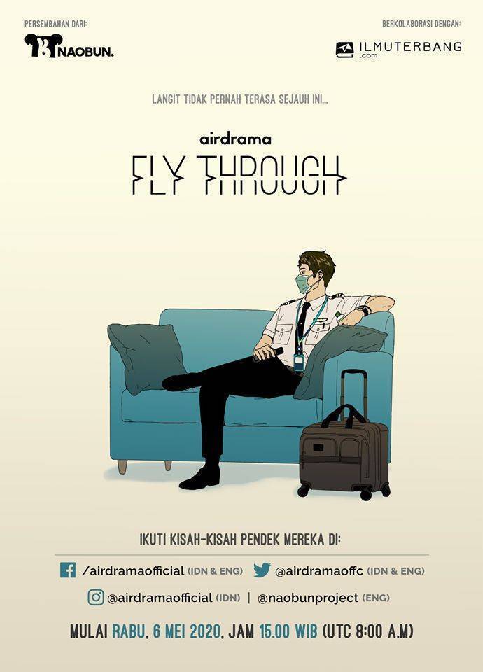 FLY THROUGH adalah komik yang berisi kisah-kisah pendek. Komik ini akan diserialisasikan secara digital langsung di akun Facebook, Twitter, dan Instagram dari airdrama dan NaoBun Project. Dalam komik ini dikisahkan mengenai Unilands, maskapai (fiktif) berbiaya rendah yang sedang berusaha mempertahankan napasnya di tengah krisis yang melanda. Ikuti kisah-kisah pendek dan ringan orang-orang di Unilands dalam menghadapi pandemi COVID-19, yang akan dirilis secara berkala mulai hari Rabu tanggal 6 Mei 2020, pukul 15.00 WIB (UTC 8:00 A.M).