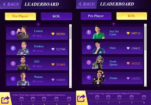 “Setiap harinya setiap pengguna MLBB akan mendapatkan jatah 12 suara; 8 suara untuk kategori professional player, dan 4 suara lainnya untuk kategori influencer”, jelas Adrian J. Alpin, Marketing Manager Moonton Indonesia, perusahaan pengembang dan penerbit gim MLBB.