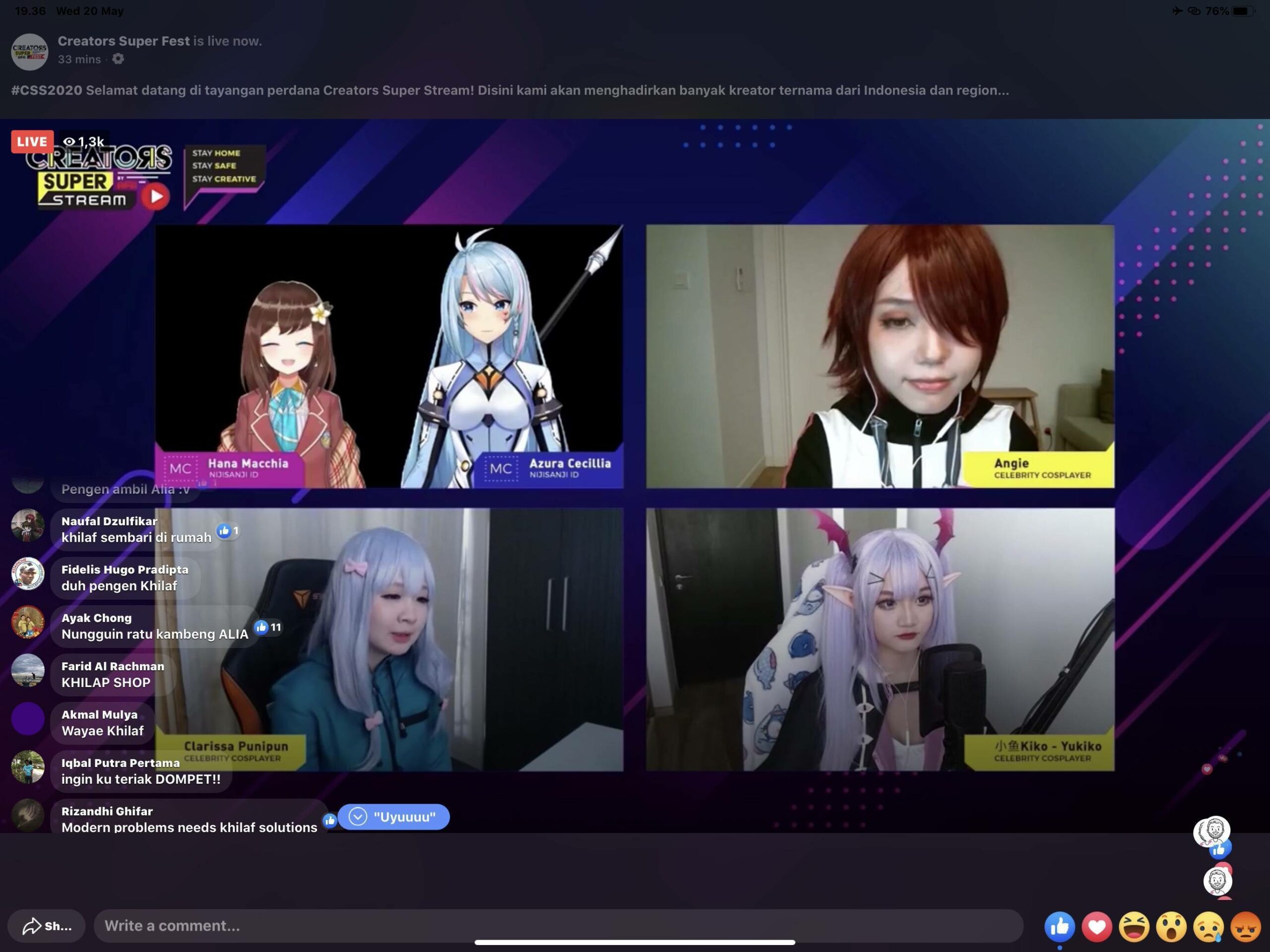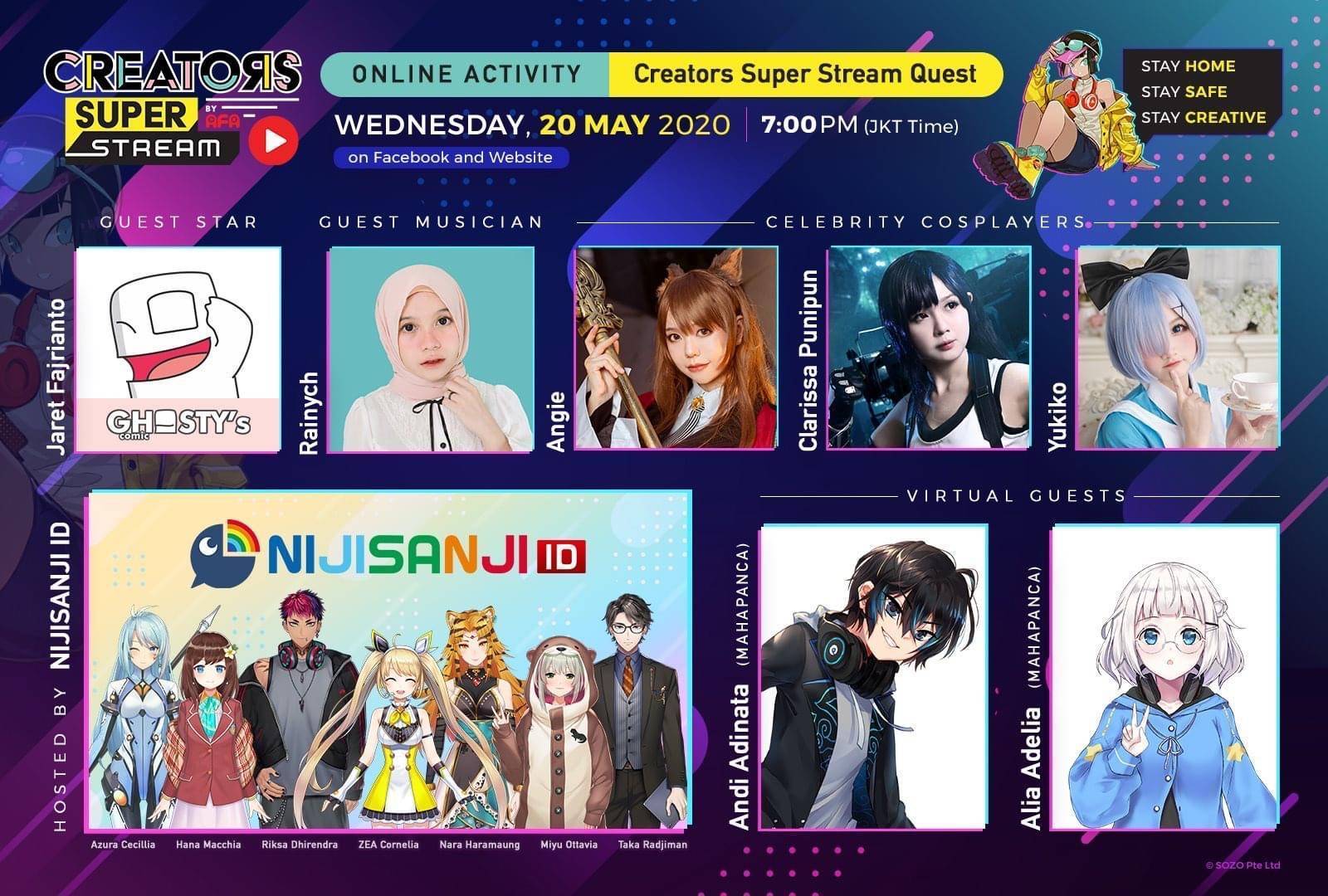 Acara Creators Super Fest dengan Format ONLINE (LIVE) pertama kalinya dengan nama CREATORS SUPER STREAM sukses tayang perdana, pada hari Rabu, 20 Mei 2020 19:00 WIB.
