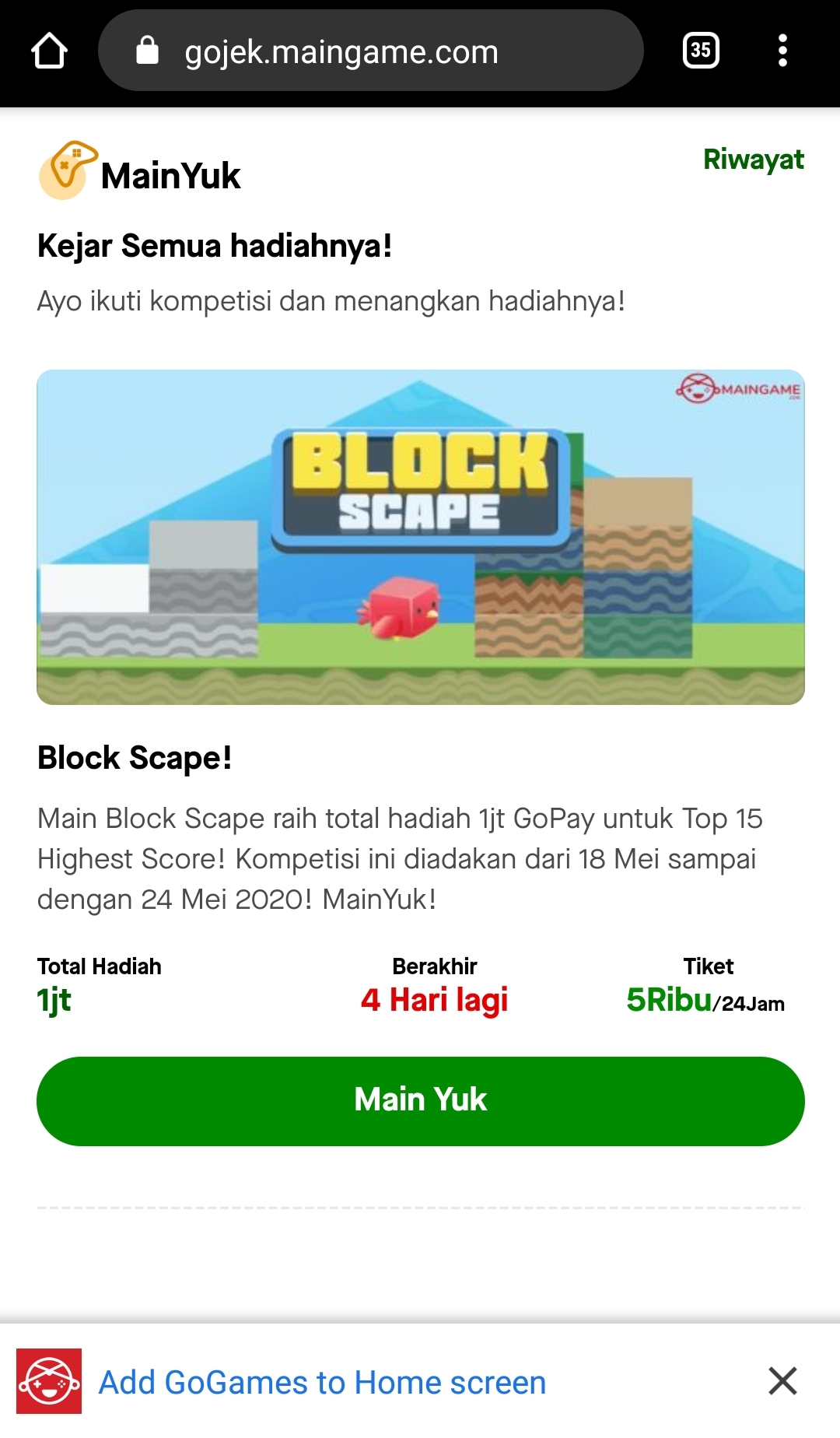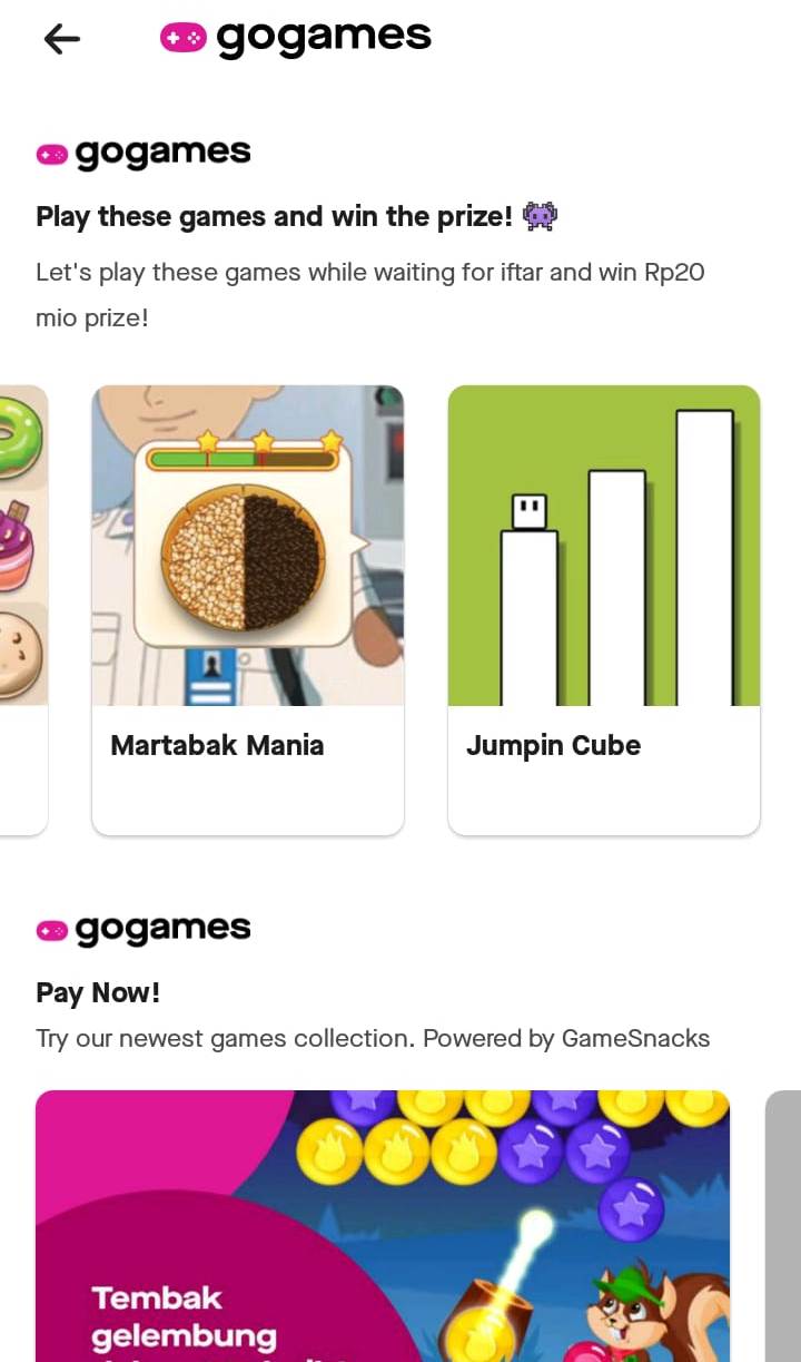 Platform permainan nasional, Maingame.com berkomitmen untuk terus memberikan kemudahan bagi para penggunanya dalam menikmati berbagai permainan dalam negeri; melalui kerja sama dengan Gojek, super app terdepan di Asia Tenggara. Hadir dalam layanan GoGames, Maingame.com kini dapat dinikmati oleh ratusan juta pengguna aplikasi Gojek di Indonesia.