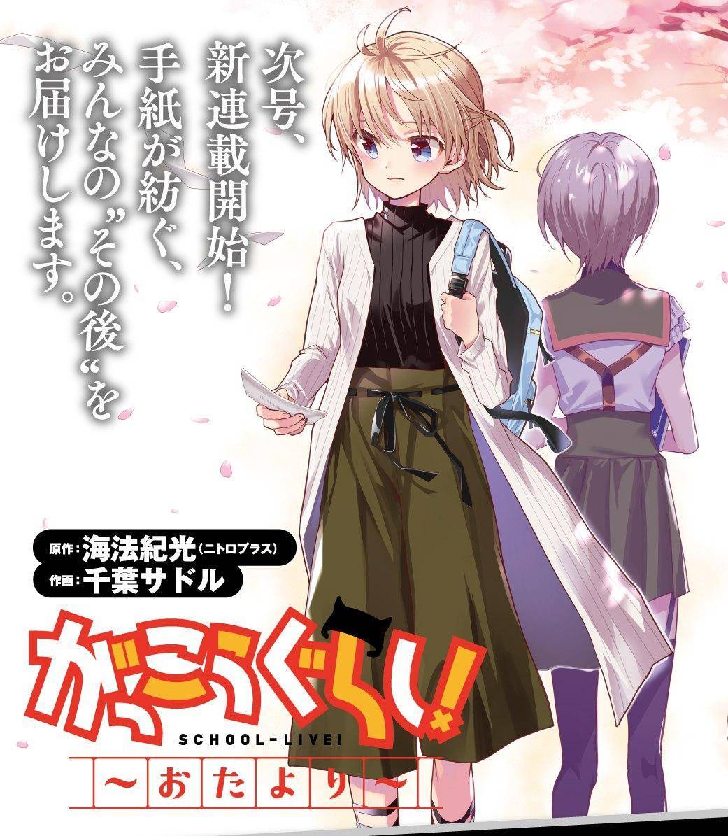Gakkou Gurashi!, komik asal Jepang tentang zombie ini telah berakhir di bulan November 2019 lalu. Namun kini melalui akun Twitternya, pihak Manga Time Kirara mengumumkan bahwa sebuah seuel yang diberi judul Gakkou Gurashi! ~Otayori~ akan dirilis di majalah komik Manga Time Kirara Forward pada tanggal 24 Juni 2020 mendatang. Adapun sekuel ini disebut-sebut berisi kisah-kisah dari para karakter utama di komik ini setelah mereka melalui petualangan penuh mimpi buruk di komik sebelumnya.