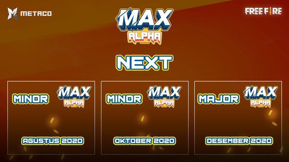 Melalui livestream Pre-Grand Final pada Senin, 6 Juli 2020 di channel YouTube resminya, Metaco mengumumkan jadwal Grand Final MAX Alpha Series 2020 akan diadakan pada tanggal 11 dan 12 Juli 2020 tepatnya dari jam 11:00 WIB. Selain pertandingan antara 12 tim Free Fire terbaik, Grand juga akan menghadirkan konten yang berbeda dari event lainnya.