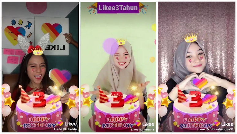 Challenge #Likee3Tahun memperkenalkan fitur Likee bernama ‘Happy 3rd Anniversary’ yang memungkinkan pengguna untuk merayakan ulang tahun Likee secara virtual. Dengan membuka corner ‘Challenge Venue’ di Karnaval “Likee Anniversary”, pengguna dapat berpartisipasi pada challenge #Likee3Tahun dengan menggunakan lagu dan tarian khusus.