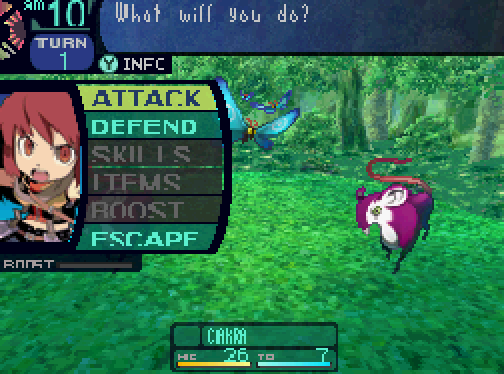 Seperti sebelumnya mengenai eksplorasi sendiri, kalaian akan disajikan dengan visual 3D yang cukup baik pada masanya untuk Nintendo DS. Pada gambar di atas saja setidaknya kalian sudah dapat melihat apa yang ada di beberapa petak depan kalian. Setiap lantai juga dibantu oleh visualisasi, seperti adanya petak bunga yang memudahkan untuk melihat sekitar. Namun, tentu sebagai RPG apa yang menarik adalah bagian pertempurannya juga. Sama seperti gim RPG turn-based lainnya, kalian akan menentukan gerakan untuk setiap putarannya dan eksekusi gerakan itu akan dihitung berdasarkan kecepatan anggota guild dan monster. Setiap monster memiliki kelemahan tersendiri ataupun titik tertentu untuk dihancurkan bila ingin mendapatkan barang khusus. Ya, seperti yang saya bilang, bila kalian mampu memenuhi beberapa kondisi pada titik tertentu di monster tersebut, maka kalian dapat mendapatkan barang langka yang penting untuk membuat peralatan unik kalian.