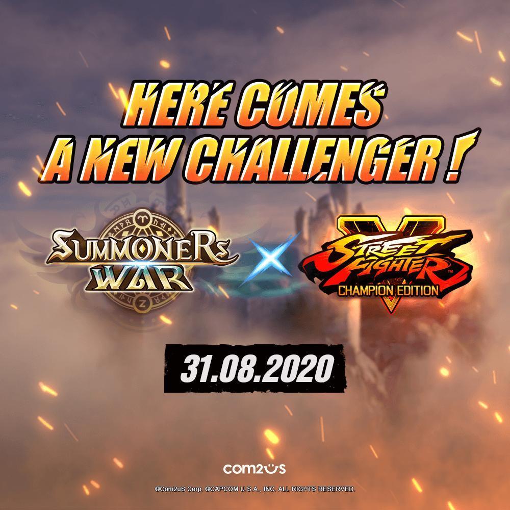 Com2uS (CEO James Song) mengumumkan bahwa Summoners War: Sky Arena (selanjutnya disebut Summoners War) akan mengadakan kolaborasi pertama dalam sejarah layanannya dengan Street Fighter V: Champion Edition milik Capcom. Sebuah gambar teaser dirilis untuk mengumumkan kolaborasi antara dua game global populer tersebut pada 31 Agustus 2020. Minat pemain semakin meningkat dengan pengumuman berbagai karakter Street Fighter V: Champion Edition yang akan muncul di Summoners War.
