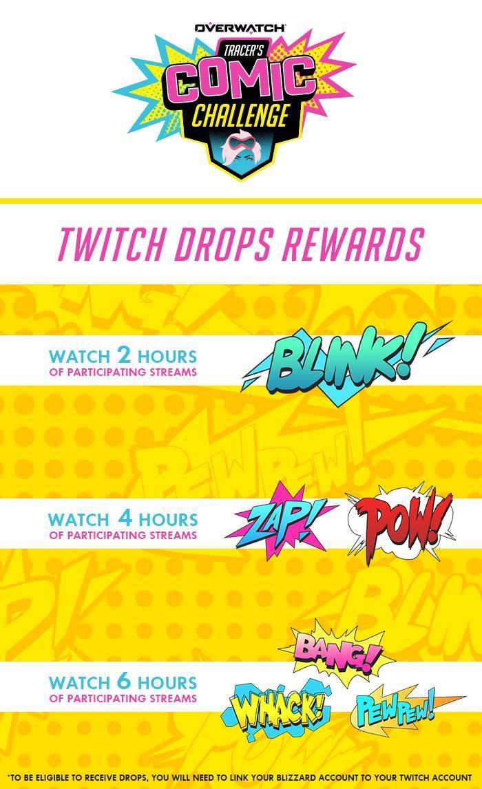 Mau hadiah lagi? Tonton stream Twitch Overwatch sebelum, selama dan setelah permainan untuk membuka berbagai cosmetic yang sangat menarik! Hadiah ini juga termasuk voice lines, jadi pastikan tonton Twitch streamer bermain Overwatch mulai hari ini hingga 29 September untuk memenangkan enam Tracer’s Comic Challenge sprays ini!