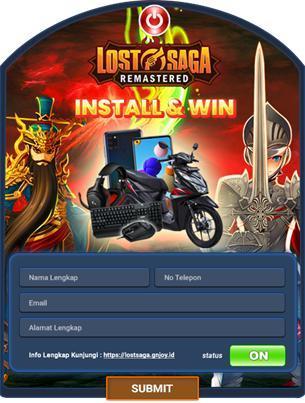 Bersamaan dengan dirilisnya Installer game Lost Saga Remastered, Gravity Game Link juga menghadirkan event special yaitu Install & Win mulai dari tanggal 23 September hingga 10 Oktober 2020. Di event ini, bagi pemain yang berhasil menginstall game ini di komputer atau laptop selama periode event akan berkesempatan untuk mendapatkan beragam hadiah menarik senilai jutaan rupiah, di antaranya sebagai berikut: