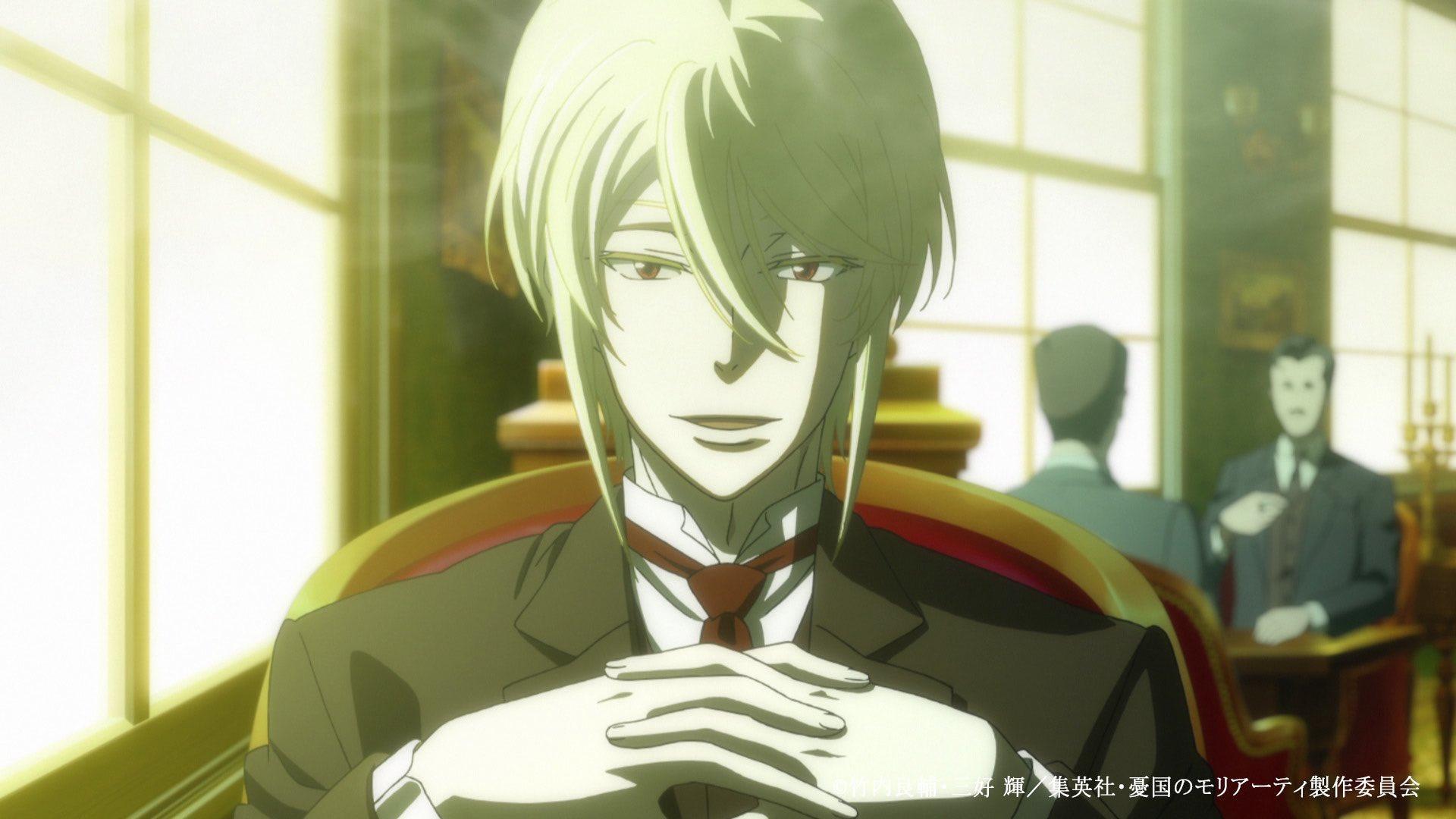 Ditayangkan di kanal Muse Asia dan Muse Indonesia, Moriarty the Patriot mencoba mengangkat sisi gelap manusia melalui sang kriminal nomor satu Inggris sekaligus musuh bebuyutan Sherlock Holmes, William James Moriarty. Paruh pertama episode perdananya diceritakan layaknya sebuah misteri whodunit. Cara berpikir Moriarty pun tidak jauh berbeda dibanding Holmes. Mereka berdua menganalisis sesuatu dengan berangkat dari hal-hal kecil yang tampak, kemudian dikembangkan menjadi sebuah kesimpulan yang utuh. Memang dalam novelnya, Moriarty dan Holmes sering dianggap sebagai dua sisi dari koin yang sama. Moralitas keduanya mungkin berbeda, tapi cara pandang mereka saat melihat sesuatu benar-benar mirip.