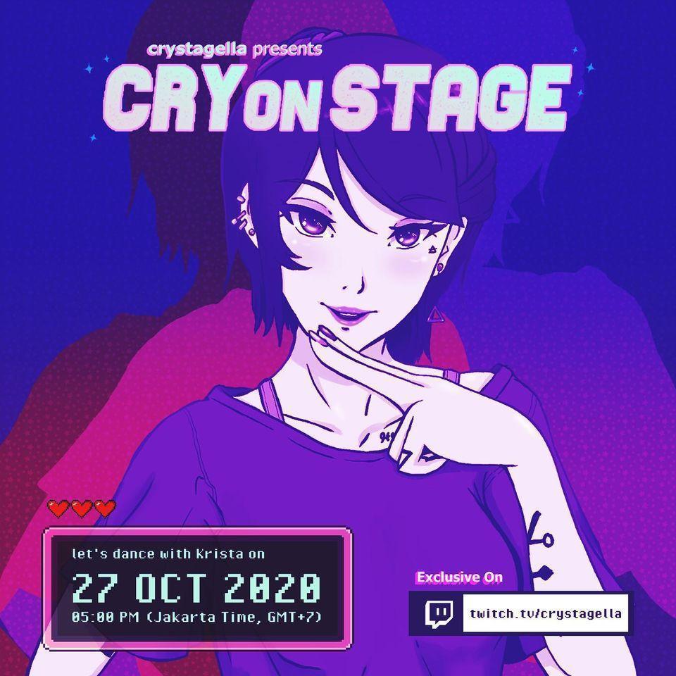 Crystagella, sosok DJ virtual ini akhirnya akan segera menggelar live show pertamanya. Dengan nama CRYonSTAGE, live show ini akan digelar secara daring melalui Twitch. Rencananya live show CRYonSTAGE akan digelar pada hari Selasa, tanggal 27 Oktober 2020, pada pukul 17.00 WIB (Jakarta Time GMT +7).