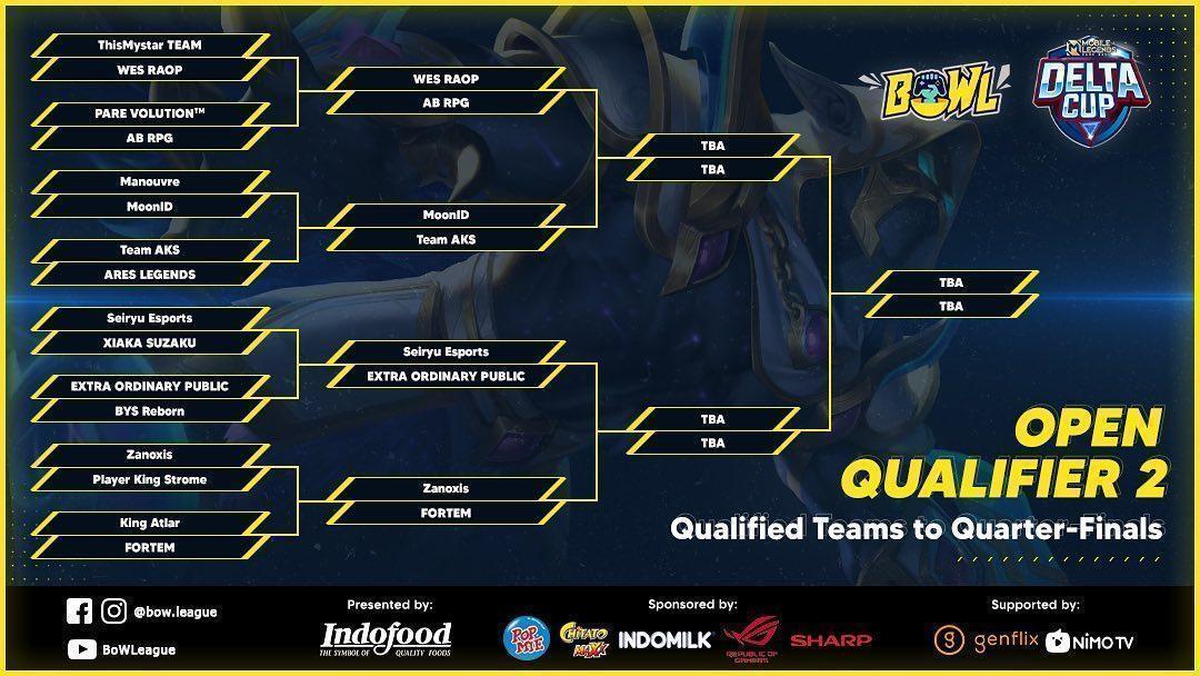 Untuk update terbaru mengenai Delta Cup: MLBB kunjungi media sosial Battle of Warriors League di Facebook & Instagram. Turnamen Delta Cup: Mobile Legends Bang Bang kali ini dipersembahkan oleh Indofood, disponsori oleh Chitato Maxx, Indomilk, Pop Mie, dan didukung oleh Genflix, NimoTV dan SHARP. Serta didukung oleh ROG Phone 3 dengan spesifikasi hebat yang menetapkan standar baru untuk game seluler!